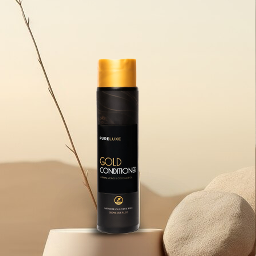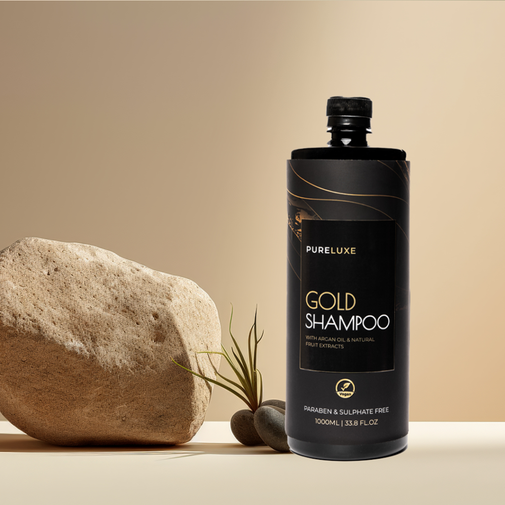 Indulge in our Sulphate-Free & Paraben-Free formula cleansing enriched with the opulence of Gold Extract, alongside Natural Fruit Extracts and